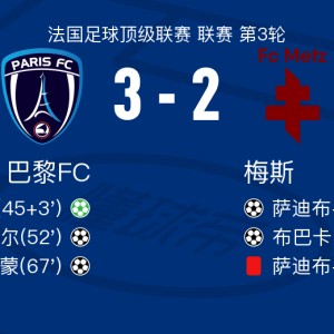 • 巴黎FC3-2逆转梅斯,凯巴尔两球,西蒙传射